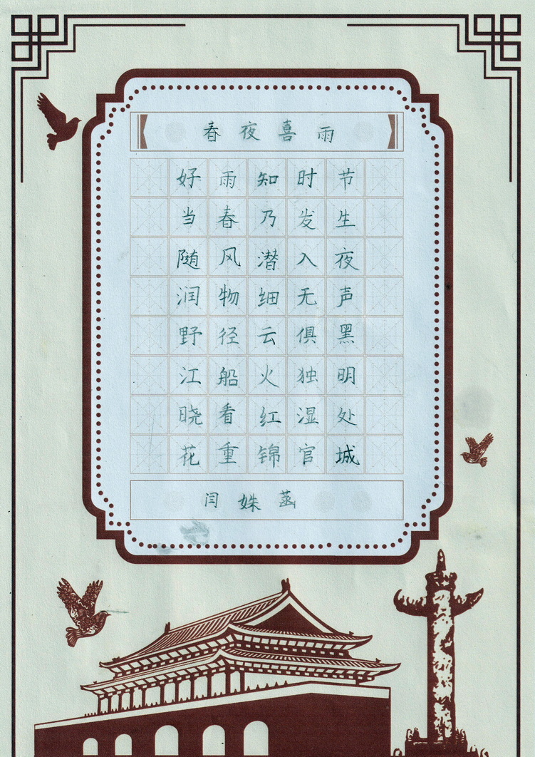 春夜喜雨 闫姝菡9岁
